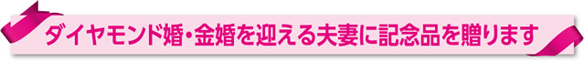 結婚60周年・50周年を迎える夫妻を祝う「ダイヤモンド婚者・金婚者お祝いの会」を毎年開催していましたが、新型コロナウイルスの感染拡大を防止するため、今年は開催を中止し、お祝いの記念品の贈呈に変更します。