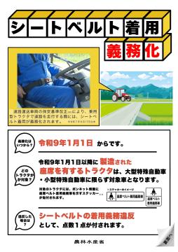周知チラシ:乗用型トラクターでの道路走行時におけるシートベルト義務化