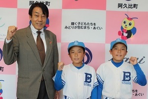 愛知県で開催の「オールジャパンベースボールリーグ小等部2025全国大会」に出場する阪本要さん、阪本聖さん(ともに草木小5年)が、11月6日に報告のため訪れてくれました。
