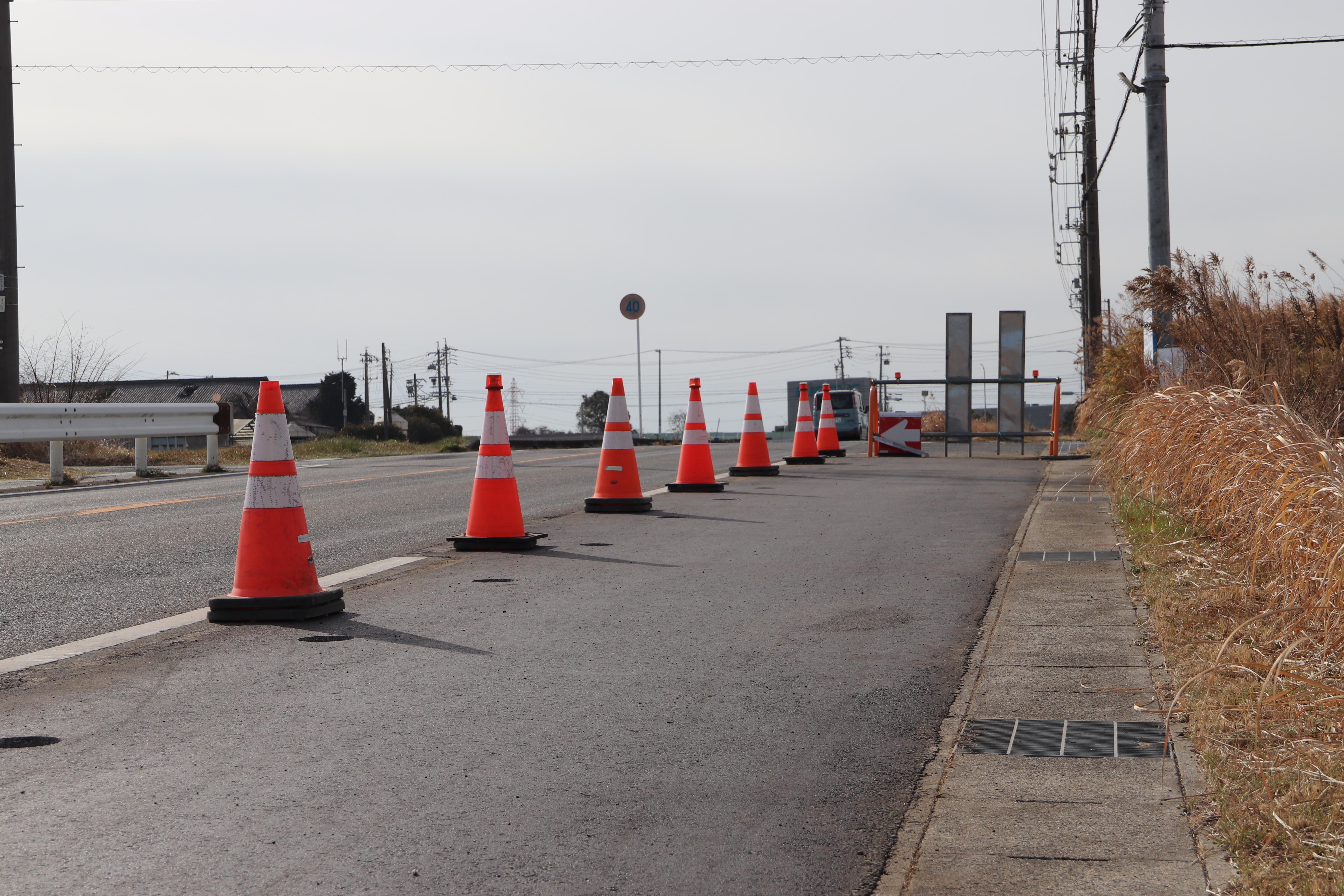 以前は、歩道外側の民地部に幅50cm程度の張りコンクリート部分がありましたが、現在は撤去されています。