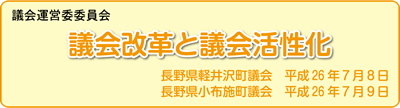 議会基本条例を制定、通年議会を導入し、議会改革・議会活性化に取り組んでいる両町ヘ視察を行った。