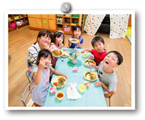 宮津保育園は、現在、0歳から6歳までの園児183人、保育士総勢40人が過ごすマンモス保育園です。「えがおいっぱい・げんきいっぱい・ともだちいっぱい」を園目標に子ども一人一人を大切にする保育を全職員が心掛けています。
