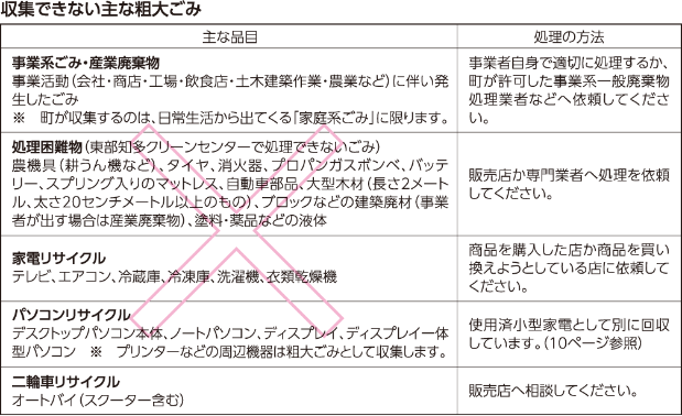 ※上記の収集できない粗大ごみは、持ち帰っていただきます。