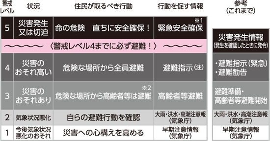※1 市町村が災害の状況を確実に把握できるものではない等の理由から、警戒レベル5は必ず発令されるものではない