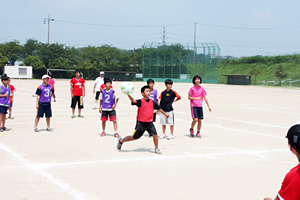 町子ども会連絡協議会が開催する「第27回町子ども会球技大会」が7月28日、板山グランドでありました。真夏の太陽が照り付ける中、町内の子ども会21チームはドッジボールを楽しみ、気温に負けない熱い戦いを繰り広げました。