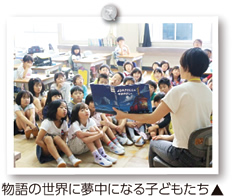 毎週水曜日の朝に、読み聞かせボランティア「ハッピーさん」による読み聞かせが行われています。子どもたちはボランティアの方の周りに集まり、静かに耳を傾け、物語を楽しんでいます。