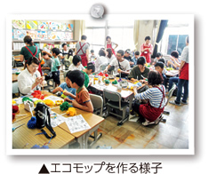 6月に行った「親子ふれあい教室」では、地域の方を講師に迎え、17種類の講座が設けられました。それぞれの講座に40人~300人の子どもと保護者が参加し、総勢2,000人を超える親子と講師が、グラウンドゴルフや掃除道具のエコモップの制作などの講座に参加しました。