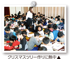2学期には、毎年恒例となっている3年生を対象にした「松ぼっくりクリスマスツリー」作りが行われました。約160人の子どもたちが地域の方に作り方を教わりながら、すてきなクリスマスツリーを作ることができました。