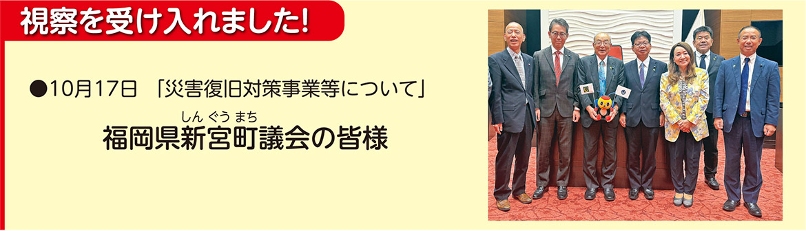 | ● 文教厚生委員会 | ○福岡県筑前町(ちくぜんまち) ○福岡県篠栗町(ささぐりまち) |