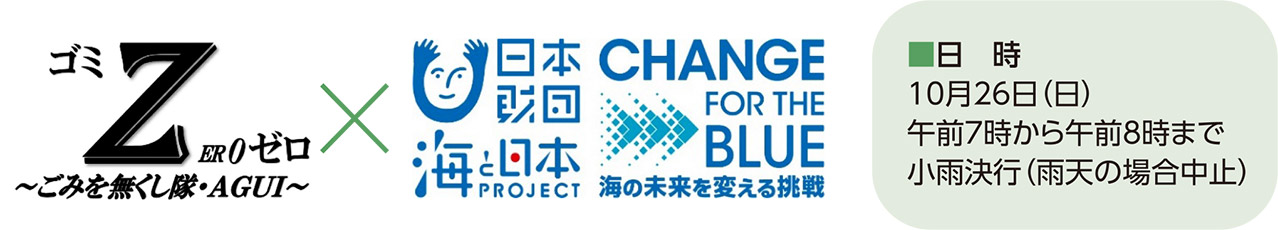 「海ごみゼロウィーク」は、「CHANGE FOR THE BLUE」プロジェクトを推進する日本財団と、「プラスチック・スマート」を推進する環境省との共同事業です。日本全体で清掃活動を実施することで、海ごみ問題の周知啓発と、海ごみを出さないという意識醸成を目的としています。