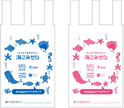 海ごみゼロウィーク事務局からオリジナルごみ袋2種類が提供されました。燃えるごみは「赤色」の袋に、燃えないごみは「青色」の袋に入れてください。