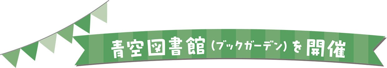 青空の下で読書を楽しめる出張図書館です。おはなし会やクイズ大会もあります。約700冊の本とともにお待ちしています。貸出券を持参すると本の貸し出しができます。
