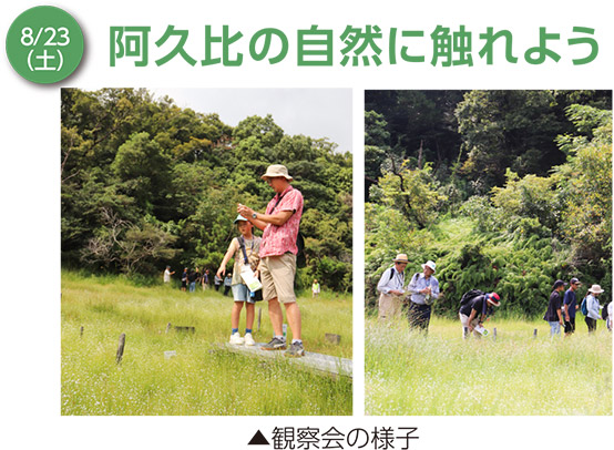 板山高根湿地でシラタマホシクサを観察する自然観察会を開催しました。集まった皆さんはあぐい板山高根湿地保存会会員による説明を聞いた後、湿地内を自由に散策しました。小さくて金平糖のようなシラタマホシクサの花を見つめたり、珍しい植物や生き物を見つけては互いに教えあったりしていました。