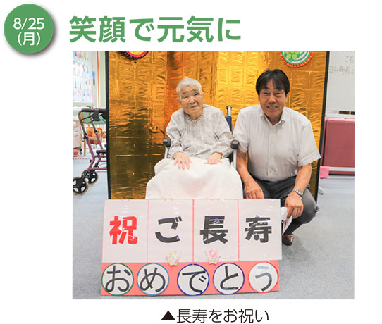 敬老の日を前に、町内の高齢者の方に敬老祝金を贈りました。町内最高齢者の新美あきさんは町長から直接祝金を受け取りました。新美さんは大正7年生まれの106歳で、祝金の贈呈に感謝の言葉を述べた上で長寿の秘訣について「人と話すことが好き」と話しました。