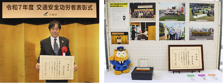 町は、交通安全思想の普及または、交通安全の確保に顕著な功績があったとして、令和7年度交通安全功労者表彰(内閣府)の市区町村の部を受賞しました。