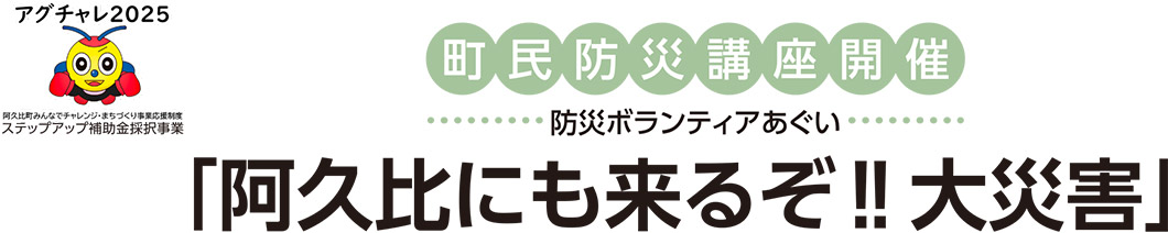■申し込み・問い合わせ先 | 防災ボランティアあぐい 梛野祐三 TEL・FAX (48)8876 |