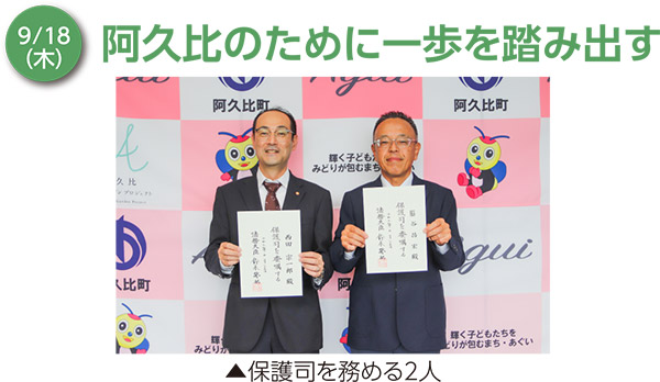 新たに保護司に任命された、西田宗一郎さんと谷昌宏さんが町長を表敬訪問しました。1期2年の任期を務める2人。西田さんは「安全・安心なまちをつくる一助となれれば」と話し、