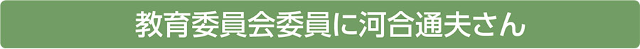 新しく教育委員会委員に河合通夫さん(板山)が任命されました。