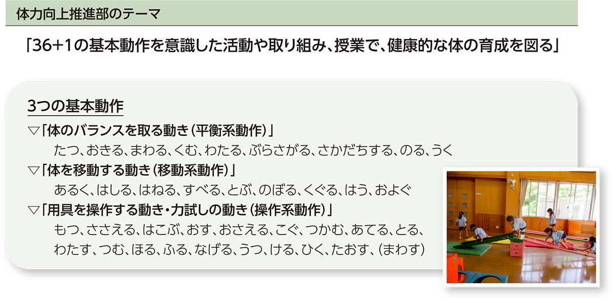 体力向上推進部では、「遊び」と「学び」が一体となった活動が、子どもたちの健やかな成長に不可欠であると考えます。今後も「遊びの中で体を動かす楽しさ」を大切にする教育を推進していきます。園で育まれた「自ら進んで体を動かす力」を、小学校や中学校の授業にもつなげ、子どもたちが生涯にわたって運動を楽しむための土台を築いていきます。