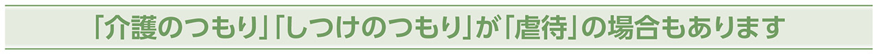 虐待は、どこでも起こりうる身近な問題です。虐待をしている人にその認識がなかったり、虐待を受けている本人も被害者と認識していなかったりして、被害を訴えられない場合があります。一人一人が認識を深めることが虐待を防ぐ第一歩です。