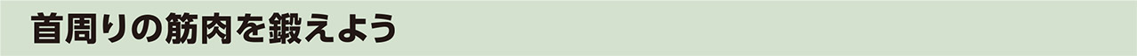 猫背や長時間のスマートフォンの使用により、あごが上がった状態で過ごしていると、肩こりや、首周りの痛みの原因につながります。あごを引いた姿勢で過ごせるよう、首の筋肉を鍛えましょう。