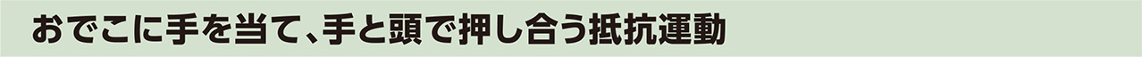 あごを引いた姿勢で両手をおでこに当て、手でおでこを押すように力を入れます。