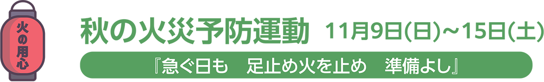 空気が乾燥して火災が発生しやすい時季を迎え、全国一斉に秋の火災予防運動が実施されます。