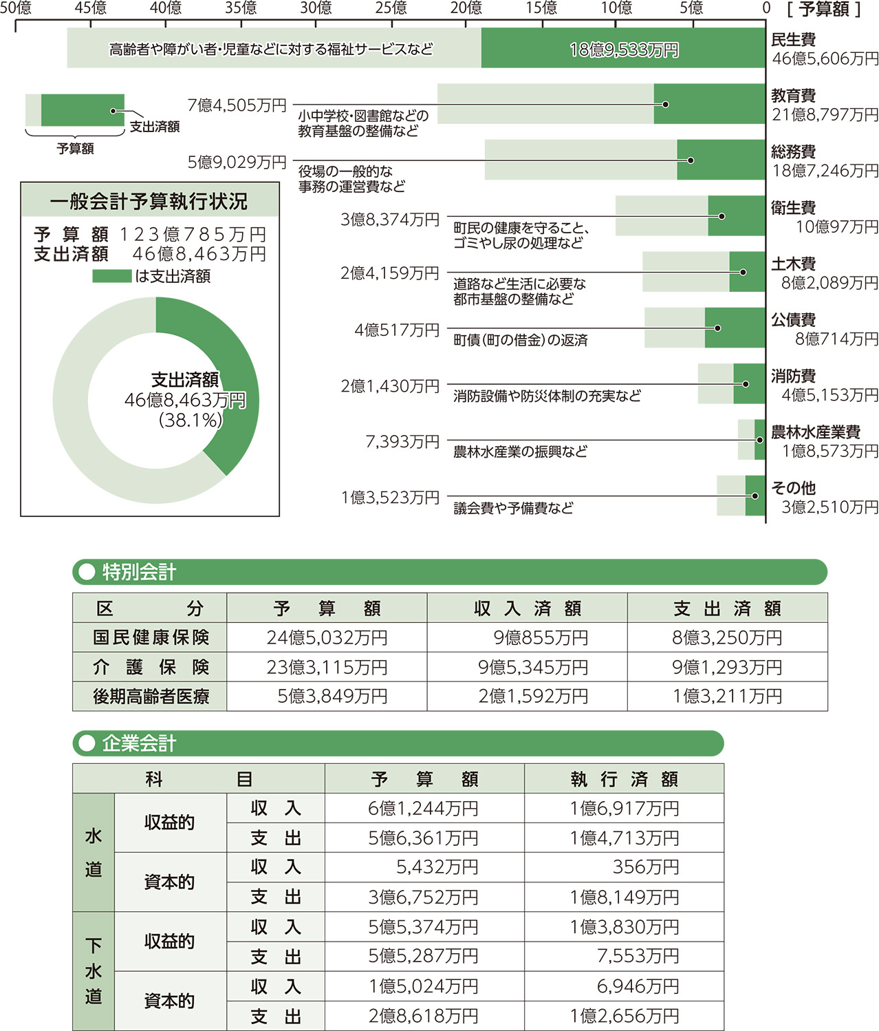 上半期の支出率は38.1パーセントで、前年度上半期の37.1パーセントと比較して1.0ポイント増加しました。