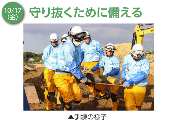 町は災害時における応援出動に関する協定に基づき、株式会社岡戸組と半田消防署阿久比支署と合同で訓練を行いました。土砂の撤去やスムーズな救助活動のために協力し、相互に連携することで防災力を強化していきます。