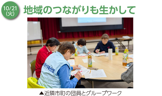 防災セミナー「災害エスノグラフィー」(主催 阿久比町赤十字奉仕団)を開催しました。知多半島地区の5市4町の赤十字奉仕団の団員約60人が集まり、グループワークを実施。被災者の言葉で伝えられる体験談をとおして、災害をイメージしながら未来に向けての必要な備えや地域の連携について話し合いました。