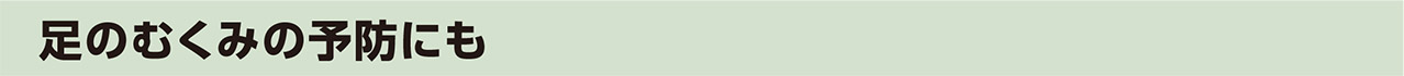 ふくらはぎの筋肉は第2の心臓と呼ばれています。ふくらはぎの筋肉を動かすことで、血液の循環が改善し、足のむくみの予防ができます。座っている時間が長くなった時に、定期的にかかと上げ下げ運動を実施しましょう。