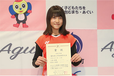第25回全国小学生ソフトテニス大会(3月29日~31日千葉県)に出場します。「全国大会に出場できるのは嬉しい。予選リーグを突破して決勝トーナメントで優勝したい」と話しました。
