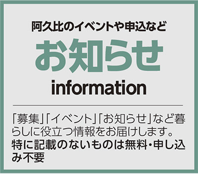 | ◆半田警察署阿久比交番 | TEL.21-0110 | ◆半田消防署阿久比支署 | TEL.47-0119 | ◆阿久比スポーツ村 | TEL.49-2500 | ||