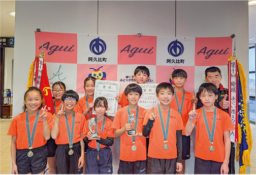 男子 上温湯成真さん(英比小6年)・井元蒼空さん、山口蒼大さん、鈴木駿さん、井川翔太さん(東部小6年)