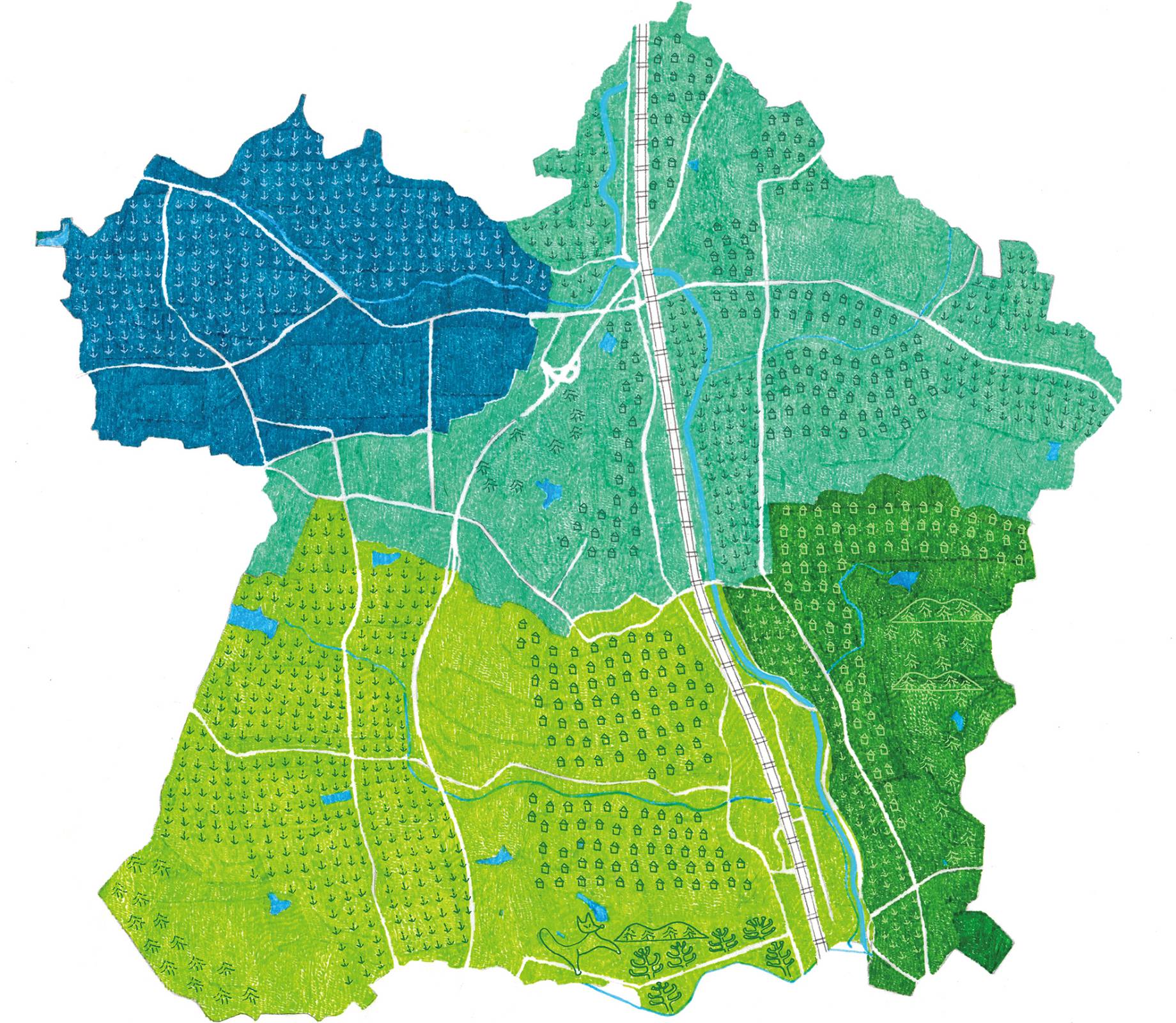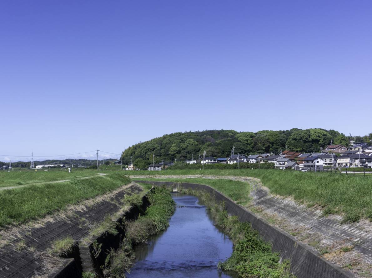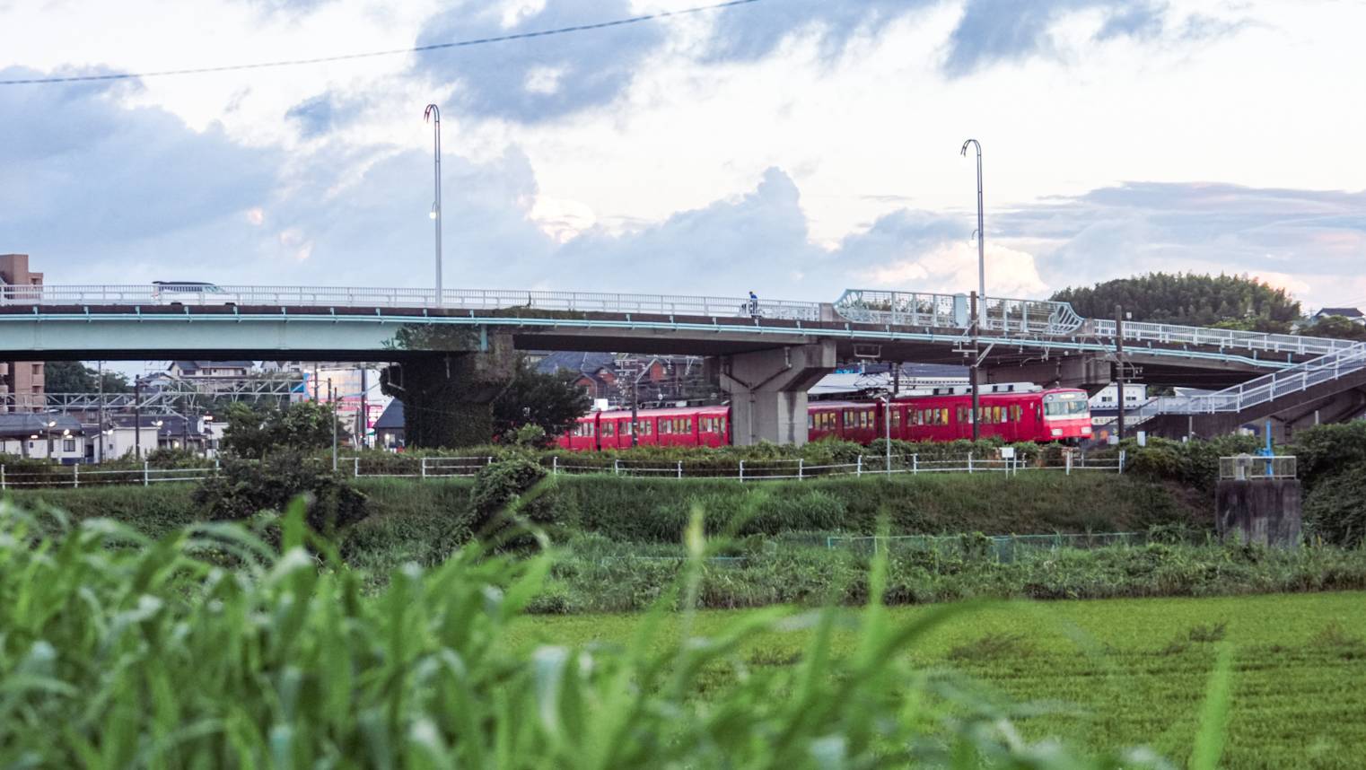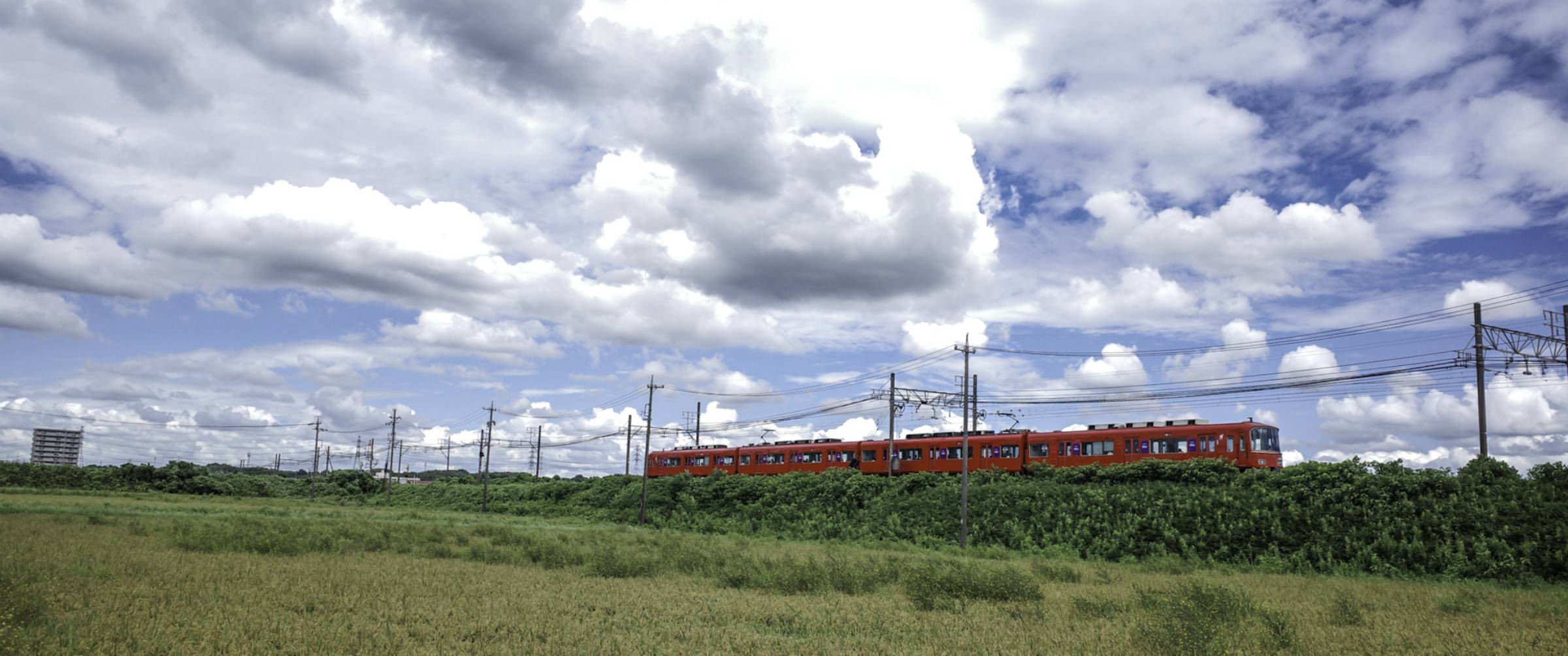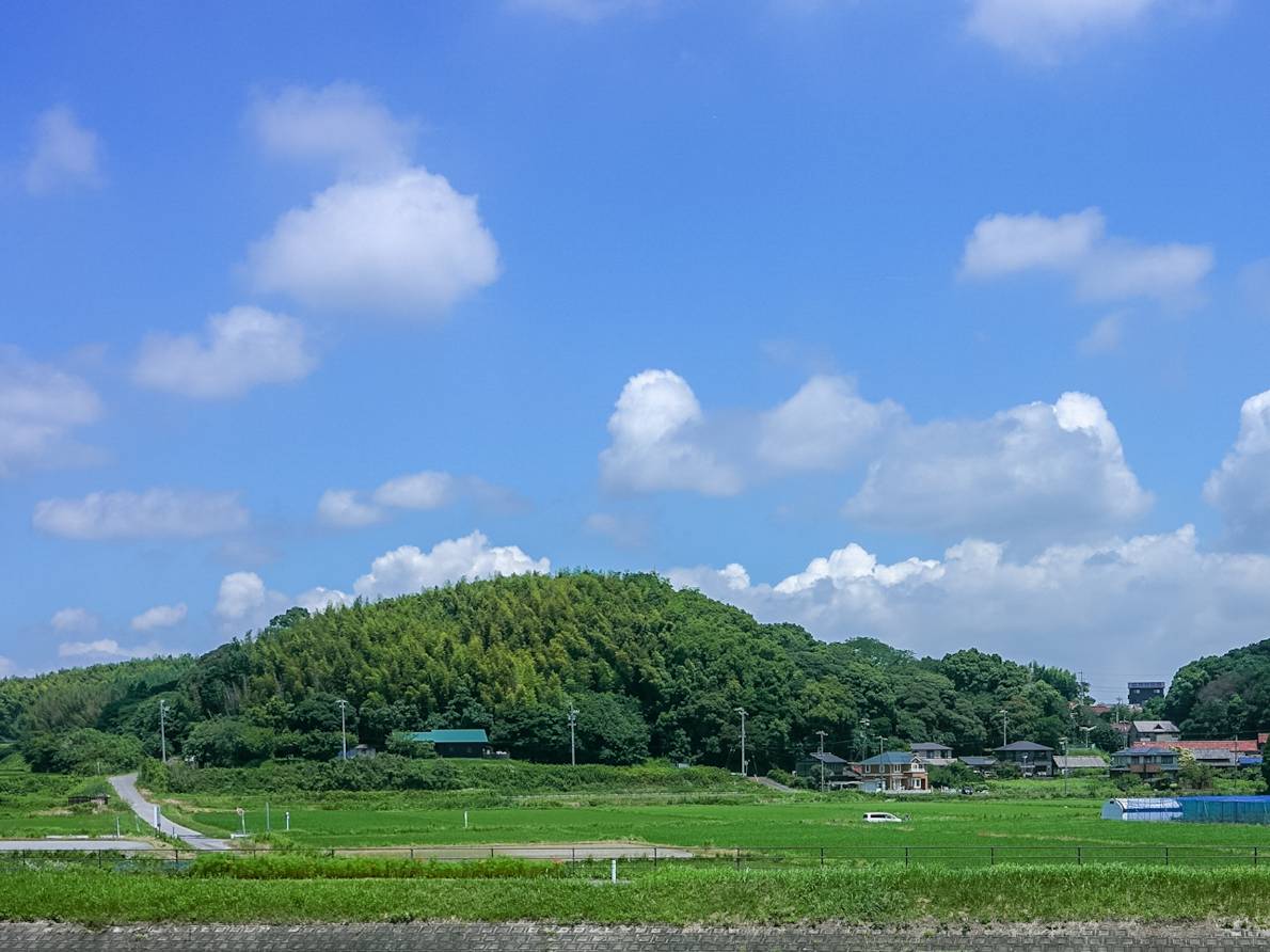 名古屋から名鉄の赤い電車で、河和行きに乗り、外の景色を眺めていると、巽ケ丘駅を過ぎたあたりで、パーっと視界が開ける瞬間がある。町並みから、空と緑が広がる風景へ。線路沿いの川が町の中心を南北に流れ、左右には田園、その先の低い丘沿いに、民家や団地、段々畑、寺社が目に映る。どこか懐かしくて、町民にとっては、「ふるさとに帰ってきた」と、実感する瞬間でもある。阿久比駅で下車して東側に出ると、未舗装の道沿いに田んぼと土手がある。電線がなく、空との境がくっきりと美しい。そこにはすでに「あぐいらしい風景」が広がっていて、時間がゆっくり進むように感じる。